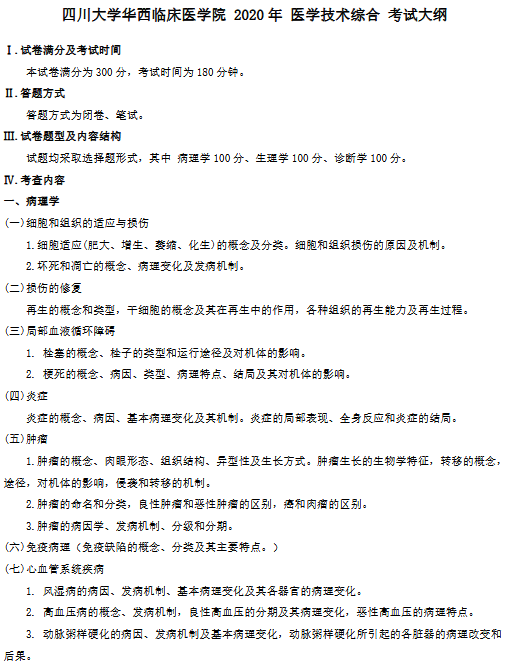 华西临床医学院2020硕士研究生入学考试710医学技术综合考试大纲已发布,博傲教育为各位考生收集到以下信息,请相关考生注意。