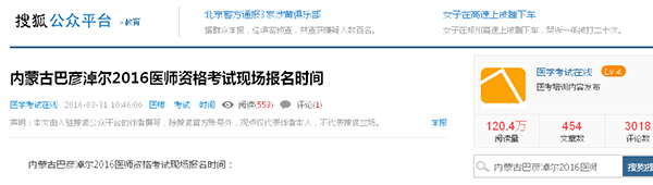 内蒙古巴彦淖尔2016医师资格考试现场报名时间