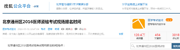 北京通州区2016医师资格考试现场报名时间|地点