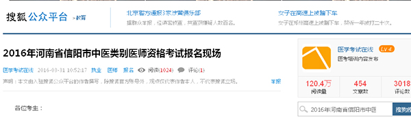 2016年河南省信阳市中医类别医师资格考试报名现场