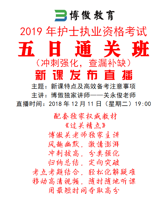 本月,小伙伴们迎来了2019年护士、护士考试的新课内容。目前,有关护士考试的新课内容全部都只在APP《博傲有课》上面呈现。上次直播课是,重点阐述了该APP的介绍和使用教程,都没来得及好好介绍一下本次新课程。