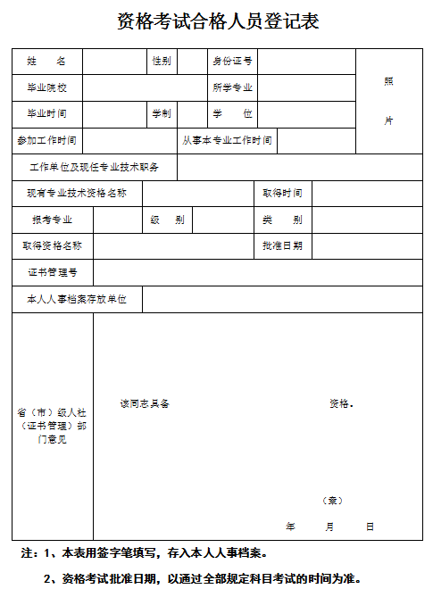 4、《资格考试合格人员登记表》1份(附件1)。
